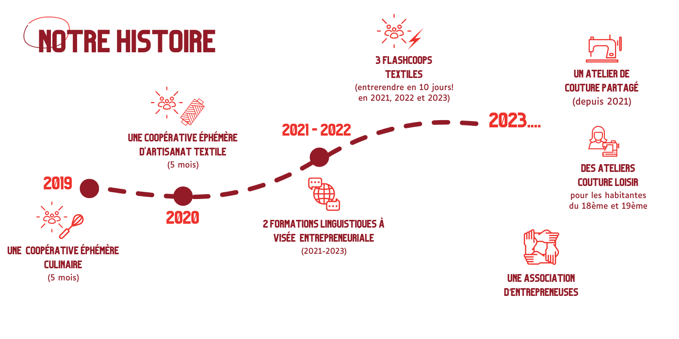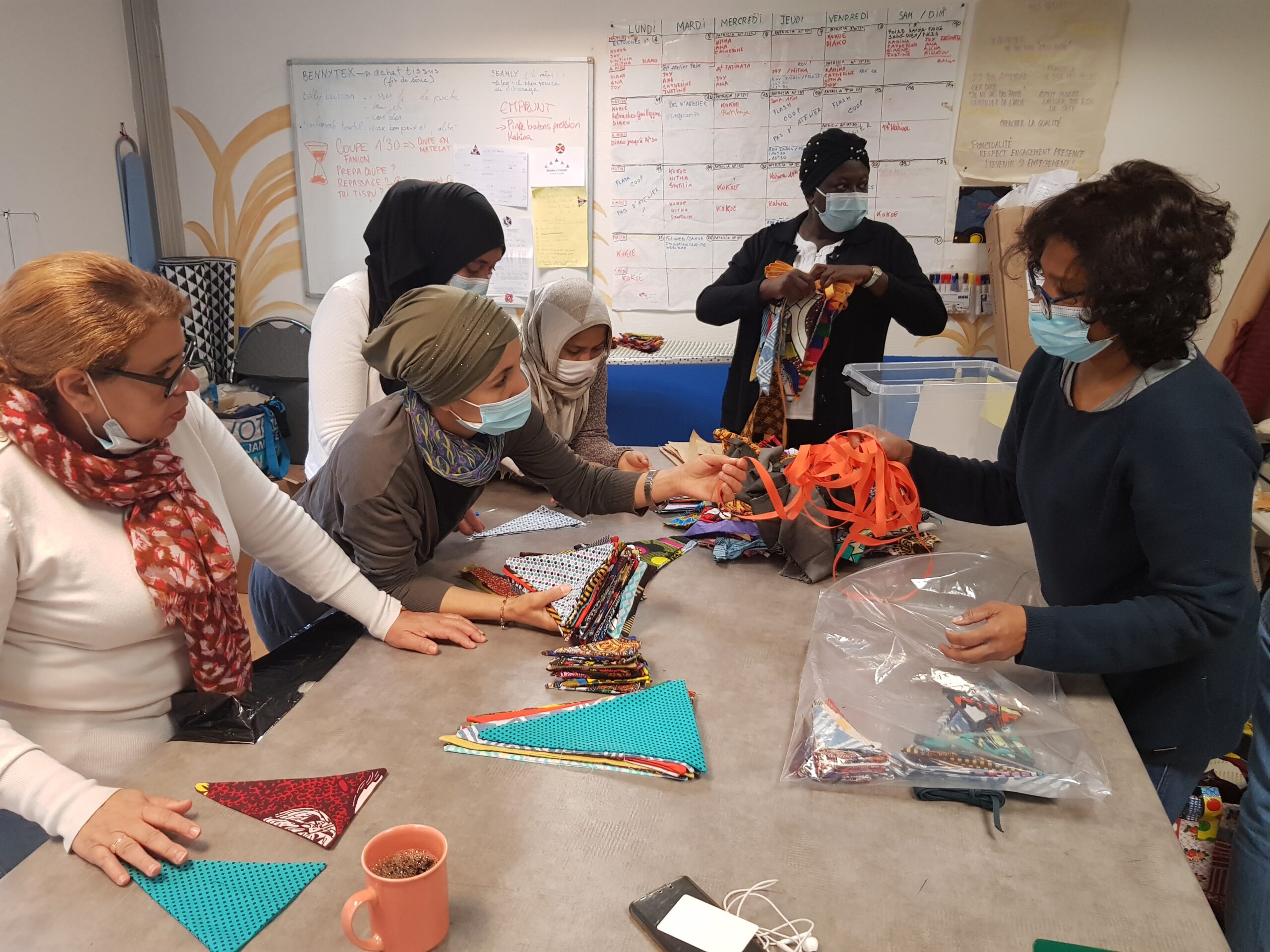 Migracoop soutient les couturières et futur.es entrepreneur.es textiles par la mise à disposition d’un espace de travail convivial de 25m2, situé dans le quartier Porte de la Chapelle, équipé d’une table de coupe, de machines professionnelles et familiales. L’atelier est accessible tous les jours, 24h/24 pour répondre aux rythmes et besoins du plus grand nombre. Lieu de vie et de production, il est autogéré par les entrepreneuses qui y travaillent et développent leur projet !